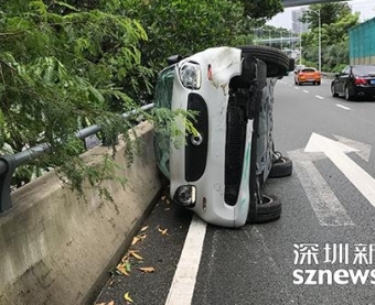 2017年9月24日上午12时左右,龙珠大道转北环大道东行立交桥段发生一起车辆侧翻事故。一辆名为“随心开”的共享汽车侧翻在转弯匝道旁,引擎仍然处于运转状态,但车内空无一人,并没有发现驾驶员或乘客。