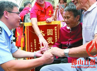 佛山日报讯 记者陈晨 通讯员梁晓茵报道:昨日,广西桂林82岁老人麦鹰与顺德乐从79岁的弟弟麦伦相看泪眼,无语凝噎。1944年分别,如今姐弟俩通过志愿者采集血样牵线,顺德公安运用DNA同胞间比对,在73年后重逢团聚。