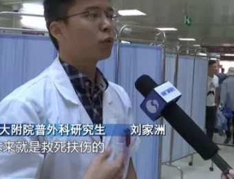 25岁的刘家洲是淮安人,目前是通大附院普外科的一名研究生。9月20日晚上,南通市区工农路金飞达广场路段,一名男子不慎倒地,后脑在出血。刘家洲正巧从此路过,看到这个情况,他迅速冲了过去,为伤者紧急止血。