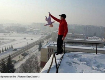 据英国《都市报》近日报道,一名俄罗斯男子站在 9 楼楼顶,手里抓着 3 个月大亲闺女的一只脚,使她倒悬在空中。随后,该男子将拍好的照片发布到网上,并将其命名为 " 从另一个角度看世界 "。然而 4 个月后,他又把女儿举出时速 70 公里的车窗外,并用视频记录