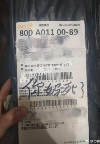 本来欢喜地收快递,却发现快递包装上被人写上了辱骂的字句,这让成都的李女士不能接受。她印象中,前一天她曾向快递员提出送到另一个地址,被拒绝后,据称感到对方态度恶劣,她便抱怨了句“你有病吧”。