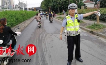 扬子晚报网9月21日讯(记者 郭一鹏 通讯员 李欣)9月20日17时许,南京交警九大队李治民警官在浦六路附近巡逻时发现,浦珠中路往澳林广场方向,临近涵洞口附近近三十米的路段有大面积柴油洒满路面,湿滑无比,安全隐患较大