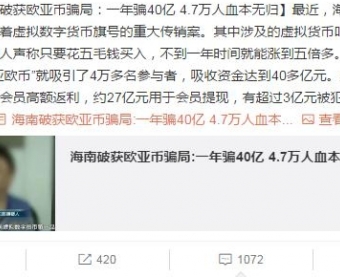 近日,网上流传一起打着虚拟数字货币旗号的重大网络传销骗局,一年骗40亿,4.7万人血本无归。今天老铁,跟大家讲讲。