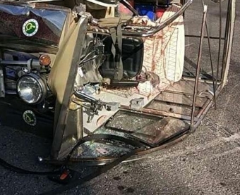 阳光刺眼 躲避不及 三轮车一头撞上大货车