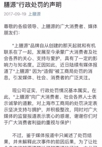 近日,沪上知名的有机食品到家配送品牌“上膳源”被曝出因“造假”被上海市工商行政管理局检查总队(后文简称“工商局”)作出50万元行政处罚的决定。消息一出,引发了市民热议,甚至对所谓的“有机产品”产生了极度不信赖感。昨天深夜,“上膳源”发表声明,