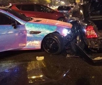 开“炫彩”奔驰跑车拉女友兜风 “发飙”撞毁路边车
