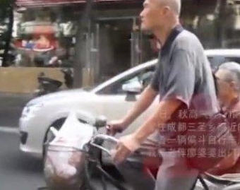 最简单的浪漫:八旬老爹数十年坚持载老伴逛街