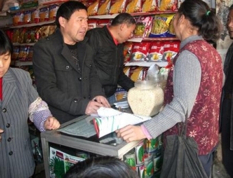 在小辛集乡张老板的农资汇店内,有一个农民大哥正在向他说苦。