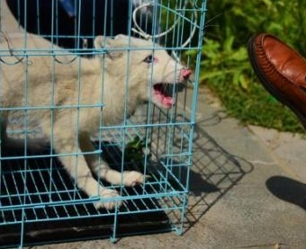 北极狐跑到郑州一居民楼楼顶偷鸽子 却被困笼中