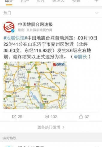 快讯丨济宁兖州发生 3.6 级地震RELEASE:2017-09-10 SEE:0