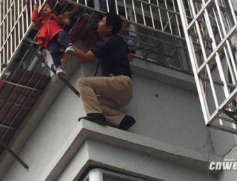 女童头卡防护网身悬空 " 托举哥 " 携众人施救