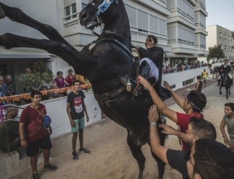 当地时间 2017 年 9 月 7 日,西班牙巴利阿里群岛 Mahon,当地庆祝传统节日 Gracia 节,民众围着骏马游行狂欢,场面十分惊险。