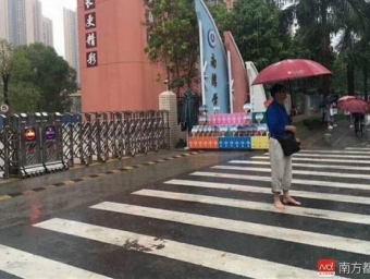 9月4日一早,深圳市气象局发布暴雨红色预警,全市停课,一张“赤脚”校长在校门口通知学生停课的照片火了。