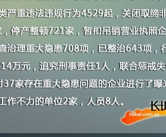 河北省排查治理重大隐患708项 停产整顿企业721家