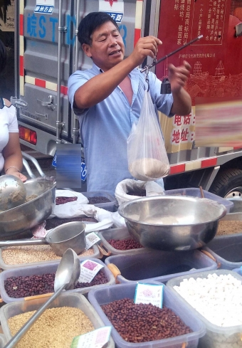 男子骑车到城里卖杂粮赔钱,如今换种方式卖杂粮日挣近千元