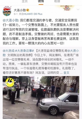 辅警用敬礼“劝离”违停车主 被咬出血也没还击