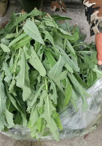 六旬大爷菜场门口卖野菜 他说,一袋子十多斤,给十块钱拎走吧
