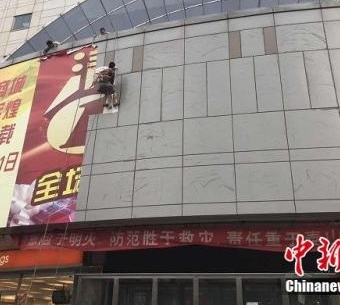 中新网客户端北京9月1日电(程春雨) 作为全国第一家五星级批零市场,北京市西城区阜成门万通商城在经营18年后于8月31日正式闭市。记者今日下午看到,万通商城门口已经张贴封条,门口上方的招牌也已经拆除,工作人员正在对闭市巨幅广告进行清除。