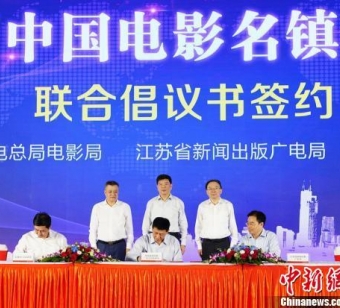 《推动"中国电影名镇"建设联合倡议书》签约现场。孙权摄中新网南京8月31日电(记者孙权)2017中国·江苏太湖影视文化产业投资峰会(下简称"峰会")31日在无锡开幕。开幕式当天,全国200多家优秀影视企业、300多位影视精英及50多位行业"大咖"齐聚无锡,就新形势下影