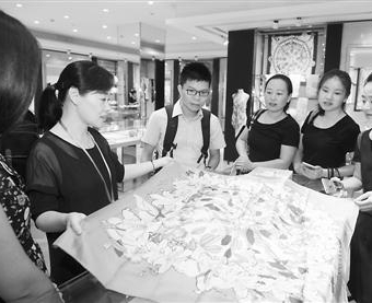 8月30日,在浙江杭州一家商店,销售人员向厦门来的客商展示一款丝巾。近年来,浙江传统产业丝绸行业以文化创意为引领、高新技术为支撑,在龙头骨干企业的带动下,走上一条转型升级之路。据浙江省丝绸协会2016年发布的的监测报告,通过几年的技术改造、创意创新,浙江