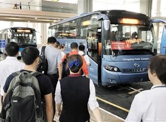 8月29日上午,重庆机场T3航站楼,在这里乘摆渡车去T1和T2航站楼的乘客排长队上车。本报记者李斌摄本报讯(记者陈翔)昨日,记者从重庆机场获悉,T3航站楼启用两天来,由于轨道交通尚不能直达,来往于T2和T3之间的免费摆渡车成为运输主力之一。据统计,两日以来,机场方