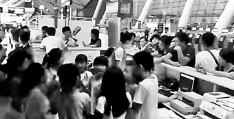 原标题:航班改签 家长让孩子“闹机场”8月23日,因台风原因,南宁机场一航班无法起飞,一群未成年人在家长的“指示”下抢占航空公司柜台,并在柜台里玩起了游