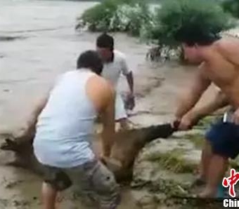 几名男子正在打捞扭角羚雨城警方供图摄中新网雅安8月29日电(刘刚穆璇兰常勇)记者29日从四川雅安市雨城区警方获悉,当地数名男子因私自打捞、收售被洪水冲下山的国家一级保护动物扭角羚已被抓获。目前,雨城警方已追回了被分割的扭角羚死体,案件正在进一步侦办中