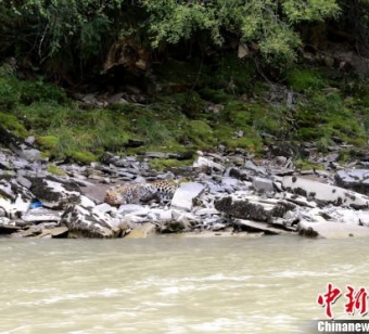 29日,四川炉霍县泥巴乡境内发现一只野生大花豹,该只花豹滞留约5个小时后返回森林。