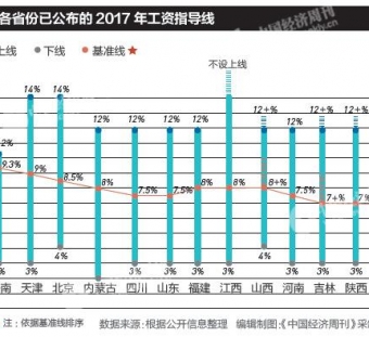 据《中国经济周刊》记者不完全统计,截至8月21日,全国已有海南、天津、北京、内蒙古、四川、山东、福建、江西、山西、陕西、河南、吉林和安徽等13个省份公布了2017年的工资指导线,多个省份的指导线数值与2016年相比有所下降。而重庆、黑龙江、江苏、浙江、西藏