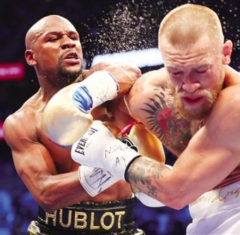 梅威瑟(左)战胜了麦格雷戈新华社发本报讯美国著名职业拳击选手弗洛伊德·梅威瑟北京时间昨日在美国拉斯维加斯举行的一场"跨界大战"中击败爱尔兰综合格斗名将康纳·麦格雷戈,赢得职业生涯第50场胜利。这场比赛吸引了美国观众和媒体的极大兴趣,被称为今年格斗型