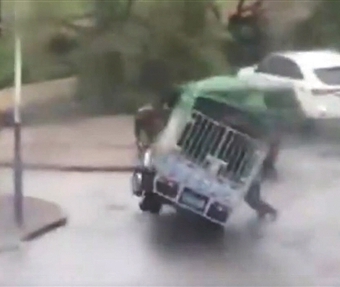 原标题:与台风抗争的货车司机:新车刚买两月8月23日12时许,台风“天鸽”来临,一位广东省中山市市民拍下这一幕:一辆货车在狂风中不停晃动,一名男子试图撑住车辆,几秒后,货车倾倒