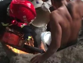 25号下午6点,在九龙坡区西彭镇一造纸厂施工工地,发生了惊险的一幕,一名工人因为操作不慎,右脚被卡进了正在运转的搅拌机,情况危急,接到报警后,九龙坡区消防支队特勤中心的消防官兵紧急赶往现场。