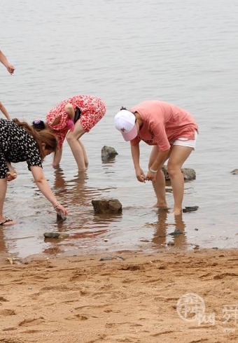 山东荣成:挖蛤蜊抓螃蟹 众多市民游客享受赶海乐趣