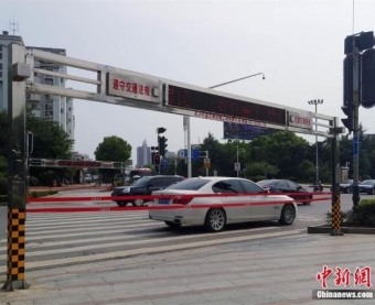 8月25日,武汉南湖大道与民族大道十字路口交界处,一款"机器拉绳系统"引导规范行人过马路。记者现场看到,这套系统外形如一个门框,上面有液晶屏,滚动着"小心过马路"、"注意左右车辆"等安全提示标语。每当红灯亮起,拉绳自动落下,系统语音会随之提醒市民禁止通行;
