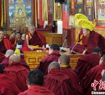 学员头顶千佛帽两人一组盘坐于辩经台上孙翔摄中新网拉萨8月26日电(孙翔)25日,中国藏语系高级佛学院第十四届高级学衔班学员13人在拉萨著名佛教寺院哲蚌寺与百余位僧人辩经。辩经,最早源自古印度,后成为藏传佛教僧人攻读显宗经典的必经方式。8月22日起,学员赴西