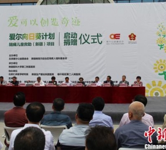 图为"爱尔向日葵计划——脑瘫儿童救助(新疆)项目"启动仪式现场。袁晶摄中新网乌鲁木齐8月25日电(袁晶)8月25日,"爱尔向日葵计划——脑瘫儿童救助(新疆)项目"在新疆医科大学第二附属医院启动。北京爱尔公益基金会向新疆残疾人福利基金会捐赠的400万元公益金将全