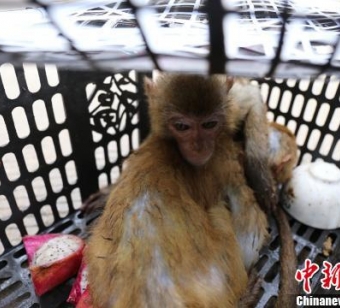 图为查获的猕猴。李昱颖摄中新网防城港8月25日电(张振国李昱颖)广西防城港公安边防支队横江边境检查站25日披露,该站日前查获2只国家二级重点保护野生动物猕猴。图为官兵开箱检查时,大猴将小猴护在身下。李昱颖摄8月23日,该站官兵在检查岗对一辆从东兴开往成都