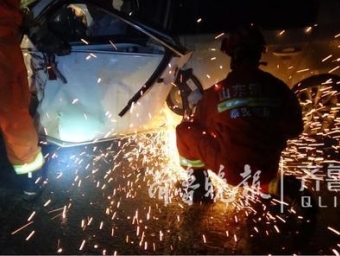 8月23日晚9点左右,新泰市发展大道泰丰集团门口,一辆小轿车与一辆大货相撞,小轿车驾驶员被困驾驶室。