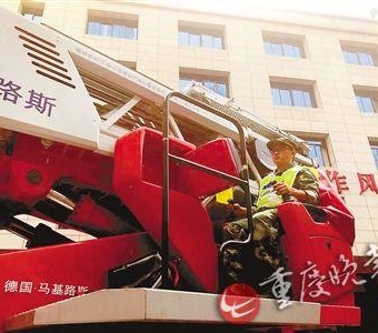 李加文正在操作云梯人物感言李加文说:"要成为一名优秀消防员,首先要有过硬专业素质,其次要勤奋好学,永远保持一颗上进心。"人物素描李加文,34岁,市公安消防总队渝中区支队较场口中队(以下简称较场口中队)特种车驾驶员,曾获优秀共产党员、训练标兵称号,荣立三等