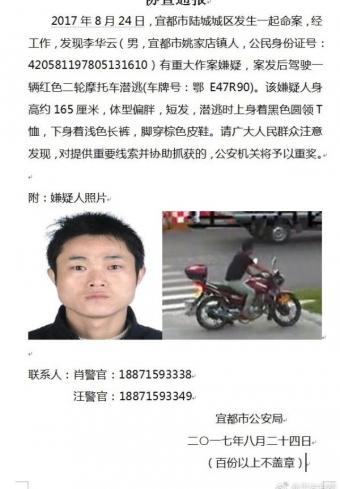 24日10时26分,湖北省宜都市公安局官方微博@平安宜都 通报称,宜都市公安局已迅速启动命案侦破机制,正全力开展案件侦破工作。