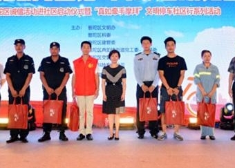 8月24日晚,“科技点亮生活,文明温暖社区”——普陀区诚信进社区启动仪式暨真如牵手摩拜文明停车社区行活动,在真如镇街道举行。