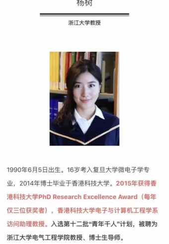 原标题:人物| 90后博导来了!学霸+女神=学神! 导读 近日,浙江大学美女教授杨树的图片刷屏。是的,90后博导来啦!在学术界,90后们也开始走到前台… 浙大首位90后美女博导:号称学神 近日,很多人的微信朋友圈被浙江大学90后美女教授杨树的传奇故事刷屏了