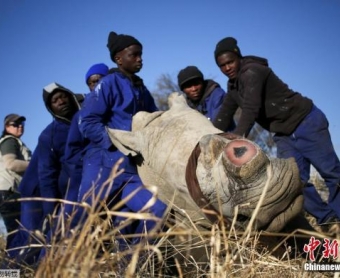 根据据研究全球地下商品贸易的Global Financial Integrity提供的数字,每年全球濒危物种的国际贸易额约为100亿美元。而犀牛角是全球最昂贵的非法贸易品之一。20世纪以来,犀牛因为过量猎杀而濒临灭绝。图为当地时间2017年8月14日,南非西北省,一名工作人员在为一