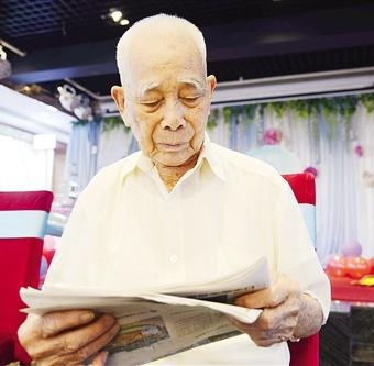 百岁老人读书看报不用戴眼镜四代同堂,潘新政享受着天伦之乐本版图片均由本报记者刘增璇摄潘新政用乐观的心态感染着每一个家庭成员在青秀区建政路,有这样一位年过百岁的老人,他能不用戴眼镜读书看报,还能坚持每天走一两个小时,买菜、做饭都能自己动手……他,就