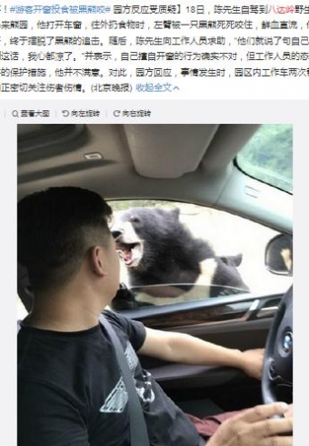 原标题:八达岭动物园公布熊咬人视频:游客不听劝向熊投食中新网北京8月22日电(汤琪) 近日,八达岭野生动物世界再次发生自驾游客被咬伤事件。22日上午,该动物世界公布监控视频,并表示,该游客在黑熊园私自