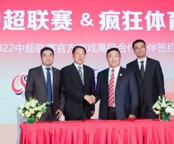 中新网北京8月21日电(张一凡)今天下午,2017-2022年中超官方游戏高级合作伙伴签约发布会在北京鸟巢金色大厅举行,会上宣布北京疯狂体育产业管理有限公司成为2017-2022年中超联赛官方游戏高级合作伙伴。双方正式签约。活动主办方供图。中超公司董事长马成全在致