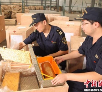 海关关员进行展品的归类审核工作。杭州海关供图中新网嘉兴8月21日电(见习记者廖式映通讯员叶旭琪)21日,嘉兴内河国际集装箱港区的海关查验平台上,宫灯、皮影、绢扇、蓝印花布等特色工艺品摆满了整个平台,活生生一场民间文化艺术"小型展览",杭州海关隶属嘉兴海