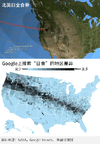 美国东部时间8月21日下午,北美将迎来今年全球唯一一次日全食。据NASA官方报道,此次日食将跨越美国50个州,是99年来首次。这也是自1970年以来,美国覆盖范围最广、最容易观测日全食的机会。这一次超级日全食的出现也明显调动起了北美人民的好奇心。谷歌搜索