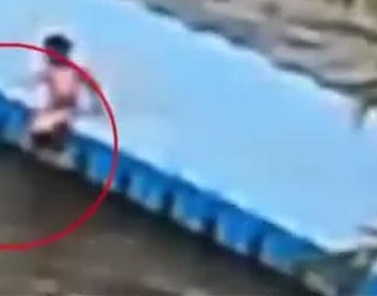 8月17日,重庆开州区汉丰湖边发生惊险一幕:一名小男孩在浮桥上玩耍,突然失足掉进湖中。