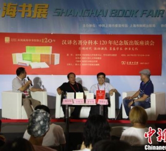 "汉译名著分科本120年纪念版出版座谈会"上海书展的现场。商务印书馆供图中新网8月20日电(记者应妮)正在举行中的上海书展迎来了商务印书馆的"汉译名著分科本120年纪念版",这一皇皇巨著达到700种的规模,可谓这一标志性学术品牌丛书的新阶段总结。《汉译世界学术